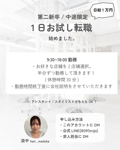 求人担当:金村、淡中(インスタhair_madoka)