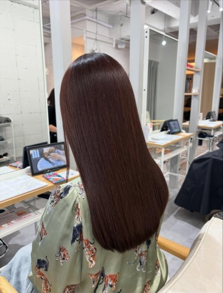 ストレートでも艶が際立つ、深みのある色味に仕上がりました🎶