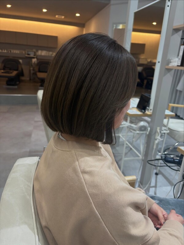 落ち着きのあるオリーブベージュで、まとまりの良いボブスタイルです!