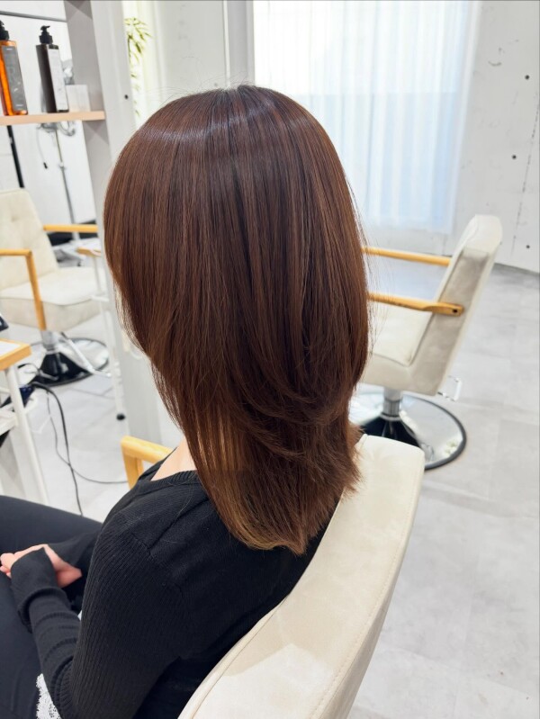 重たく見えないレイヤースタイル◎毛先に軽さを出して、動きのあるシルエットに仕上げました✨ストレートでも柔らかく見えるのがポイントです!